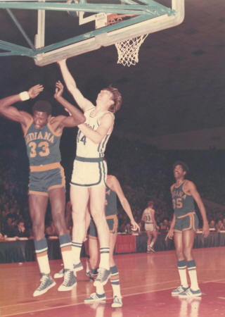 ![]() Don Sidle (33), Dan Issel (44), Roger Brown (35) Indiana Pacers at Kentucky Colonels |