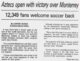 Angeles Soccer Tournament) Date: March 19, 1981 Aztecs lost 1-0 Attendance: 4,534 |