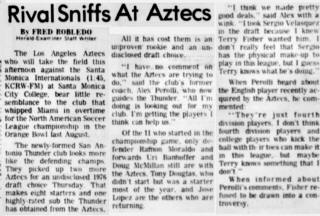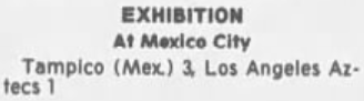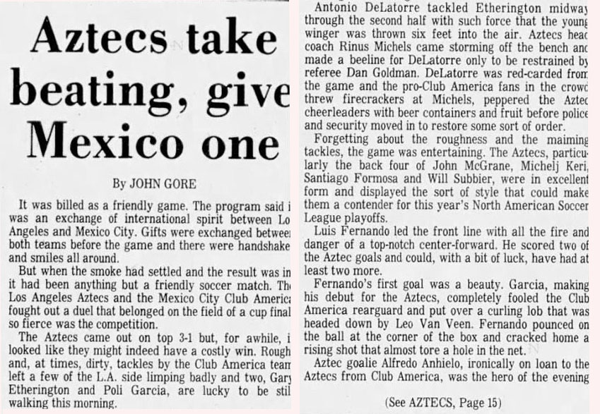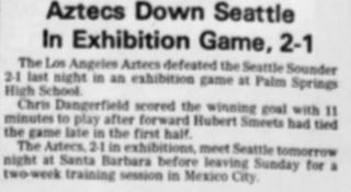 | Club America (Mexico) at Los Angeles Aztecs Date: April 21, 1974 Aztecs lost 2-1 Attendance: 14,211 Goals: Aztecs-Tony Douglas Club America-Sergio Ceballos, Castro |