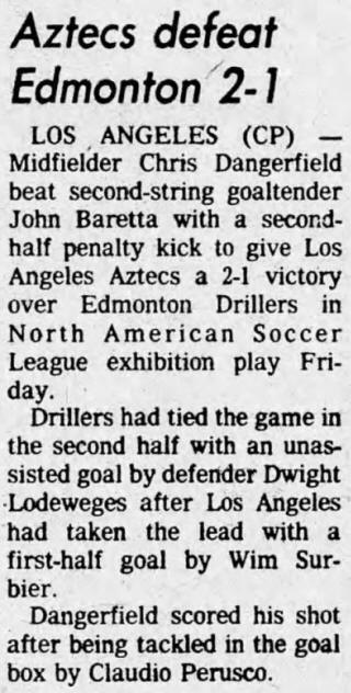 | Los Angeles Aztecs at Drechtsteden '79 (Dortrecht, Netherlands) Date: September 28, 1979 Aztecs won 3-1 Attendance: 15,000 Goals: Aztecs-Chris Dangerfield (2), Refik Kozic Drechsteden '79- |