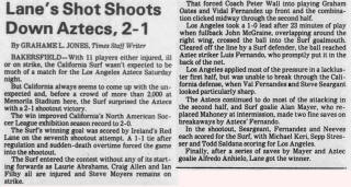(Bakersfield, California) Date: March 14, 1981 Aztecs lost 2-1 (SO) Attendance: 2,000 Goals: Aztecs-Luis Fernando Surf- |