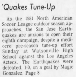 CA) Date: March 23, 1981 Aztecs won 1-0 Attendance: 1,000 Goals: Aztecs-Magic Gonzalez |