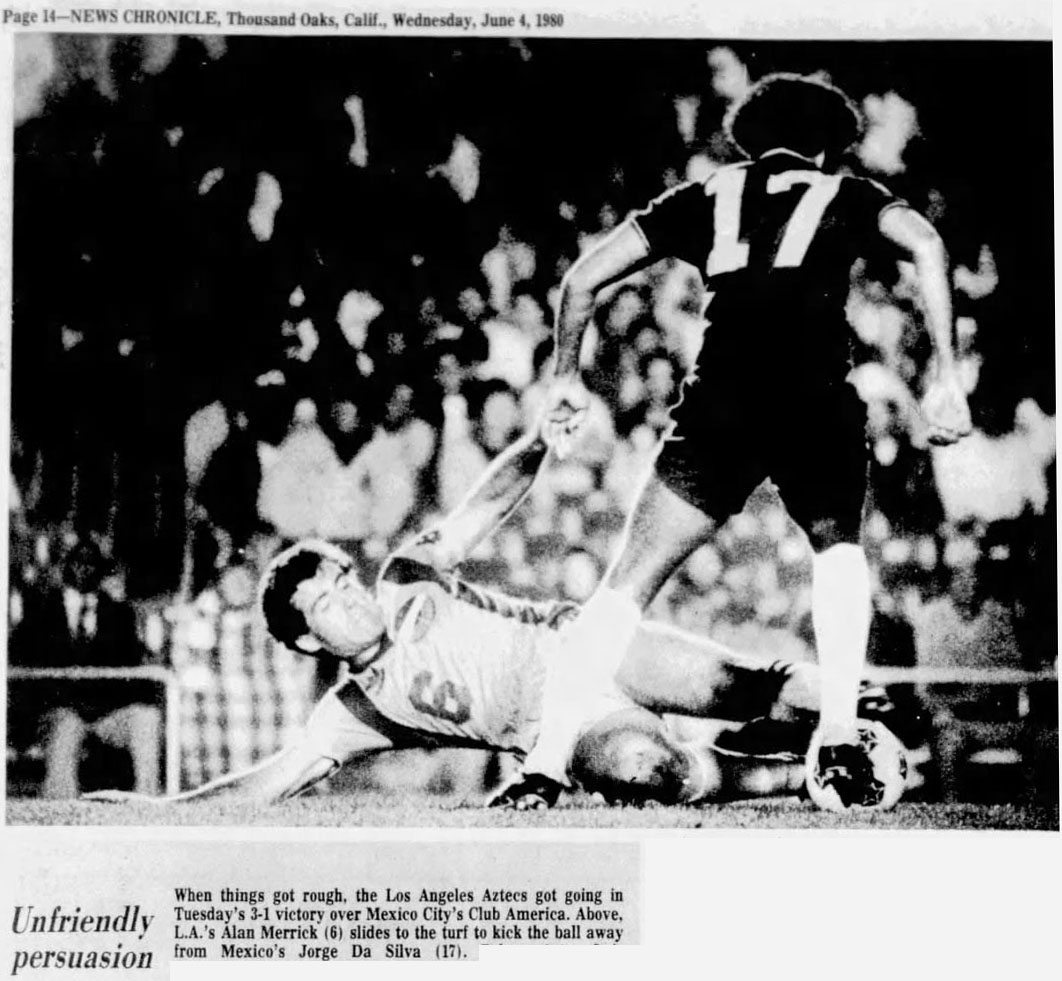 | Club America (Mexico) at Los Angeles Aztecs Date: June 3, 1980 Aztecs won 3-1 Attendance: 12,603 Goals: Aztecs-Luis Fernando (2), Club America-Jorge Da Silva |