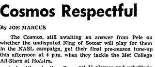 | College All-Stars at New York Cosmos Date: April 22, 1975 Cosmos won 1-0 Attendance: Goals: Cosmos- |