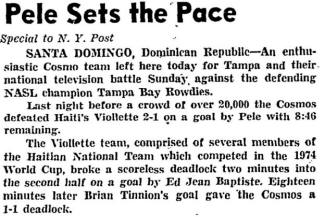 Domingo, Dominican Republic) Date: June 3, 1976 Cosmos won 2-1 Attendance: 20,000 Goal: Pele, Brian Tinnion Violette-Ed Jean Baptiste |