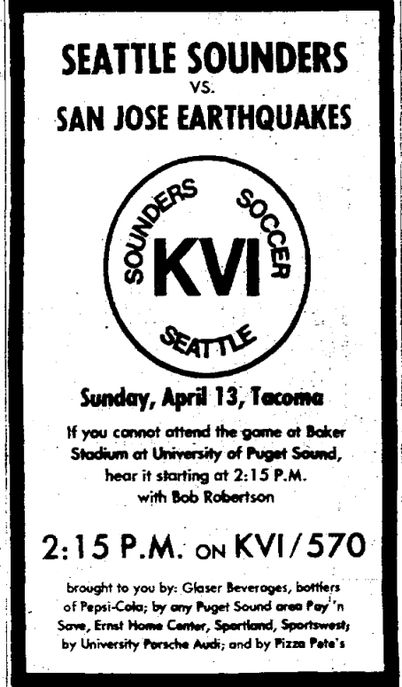 Date: April 4, 1976       Sounders tied 2-2       Attendance: 3,000
