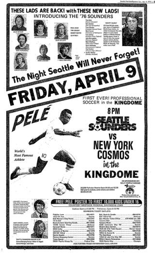 Date: April 2, 1976       Sounders lost 2-1       Attendance: 4,400