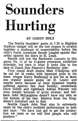 Date: March 14, 1976       Sounders lost 4-0      Attendance: 3,422