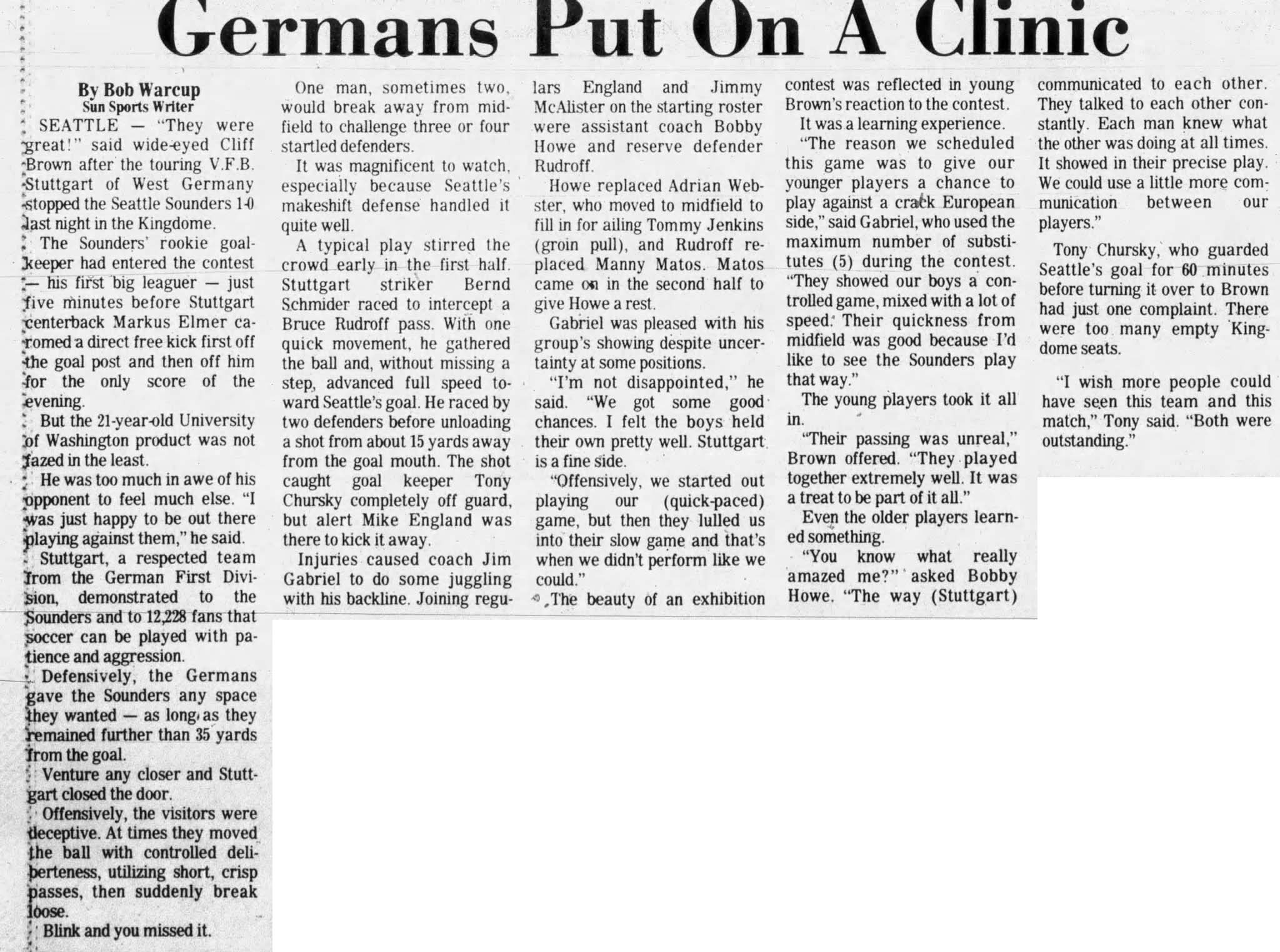 Date: March 27, 1983   Sounders won 2-0     Attendance: 2,519