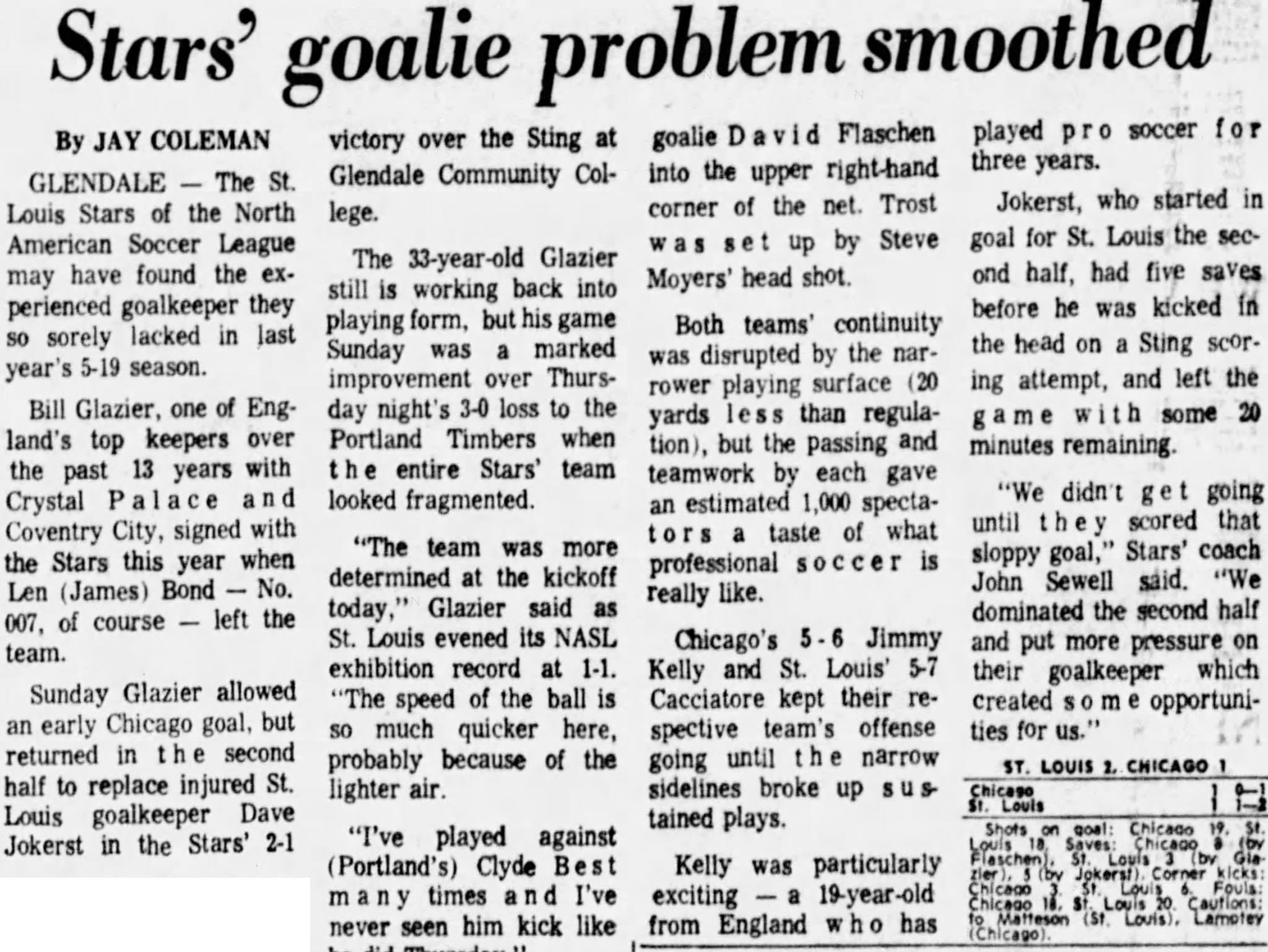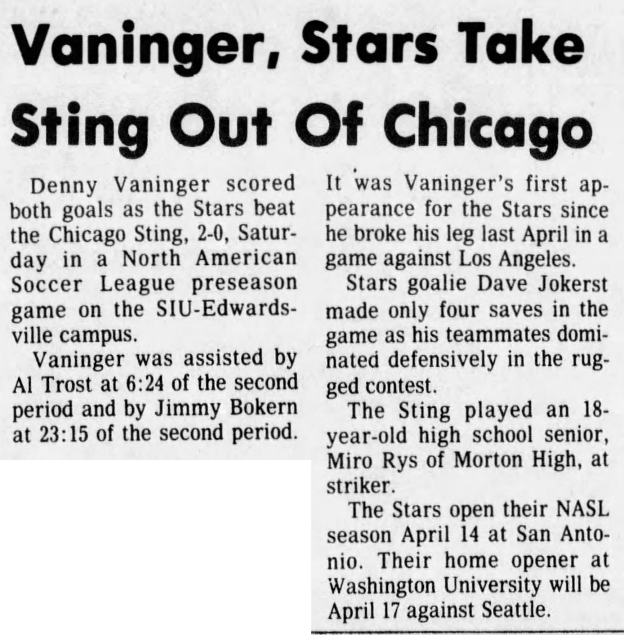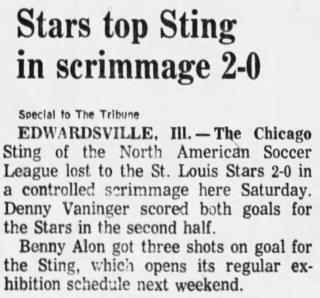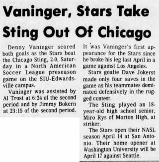 (Edwardsville, Illinois) Date: March 27, 1976 Stars won 2-0 Attendance: Goals: Goals-Dennis Vaninger (2) |