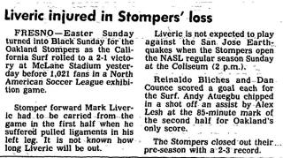 Date: March 21, 1980  Surf won Timbers lost 4-3   Attendance: