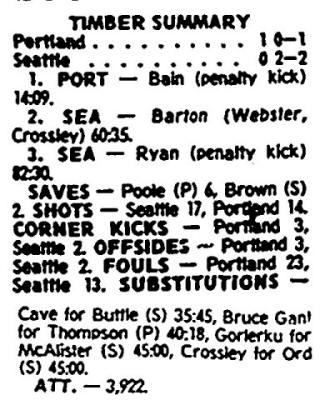 Goals: Sounders-Frank Barton, John Ryan   Timbers-John Bain