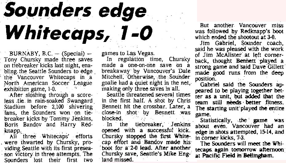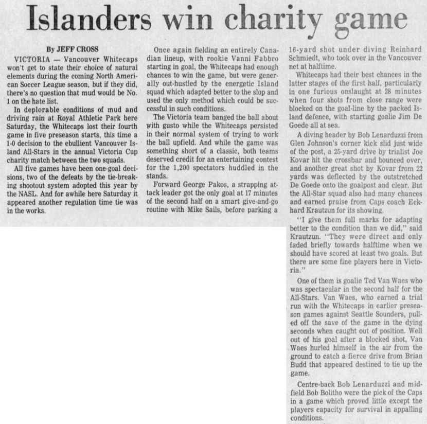 Date: March 22, 1977    Whitecaps won 2-1    Attendance: 1,500