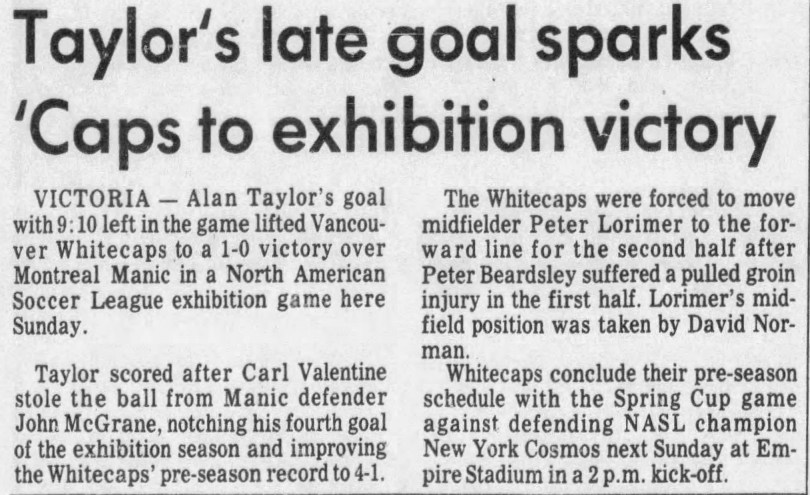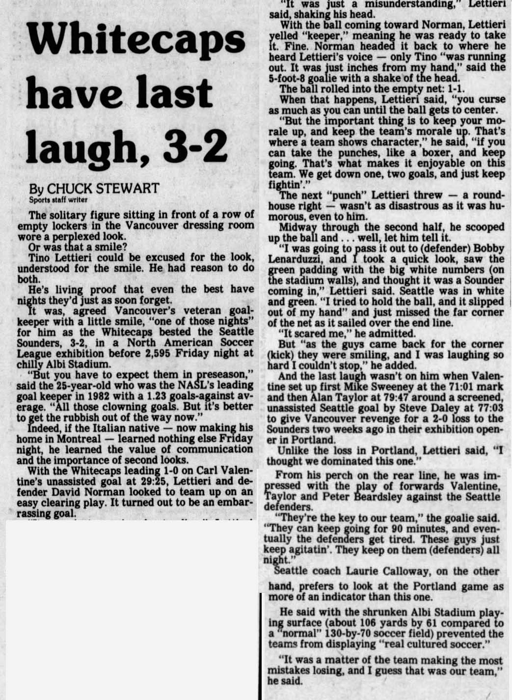 Date: March 30, 1982    Whitecaps won 2-1    Attendance: