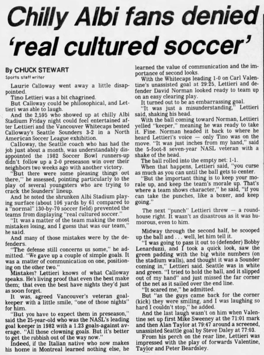 Date: March 27, 1983   Whitecaps lost 2-0     Attendance: 2,519