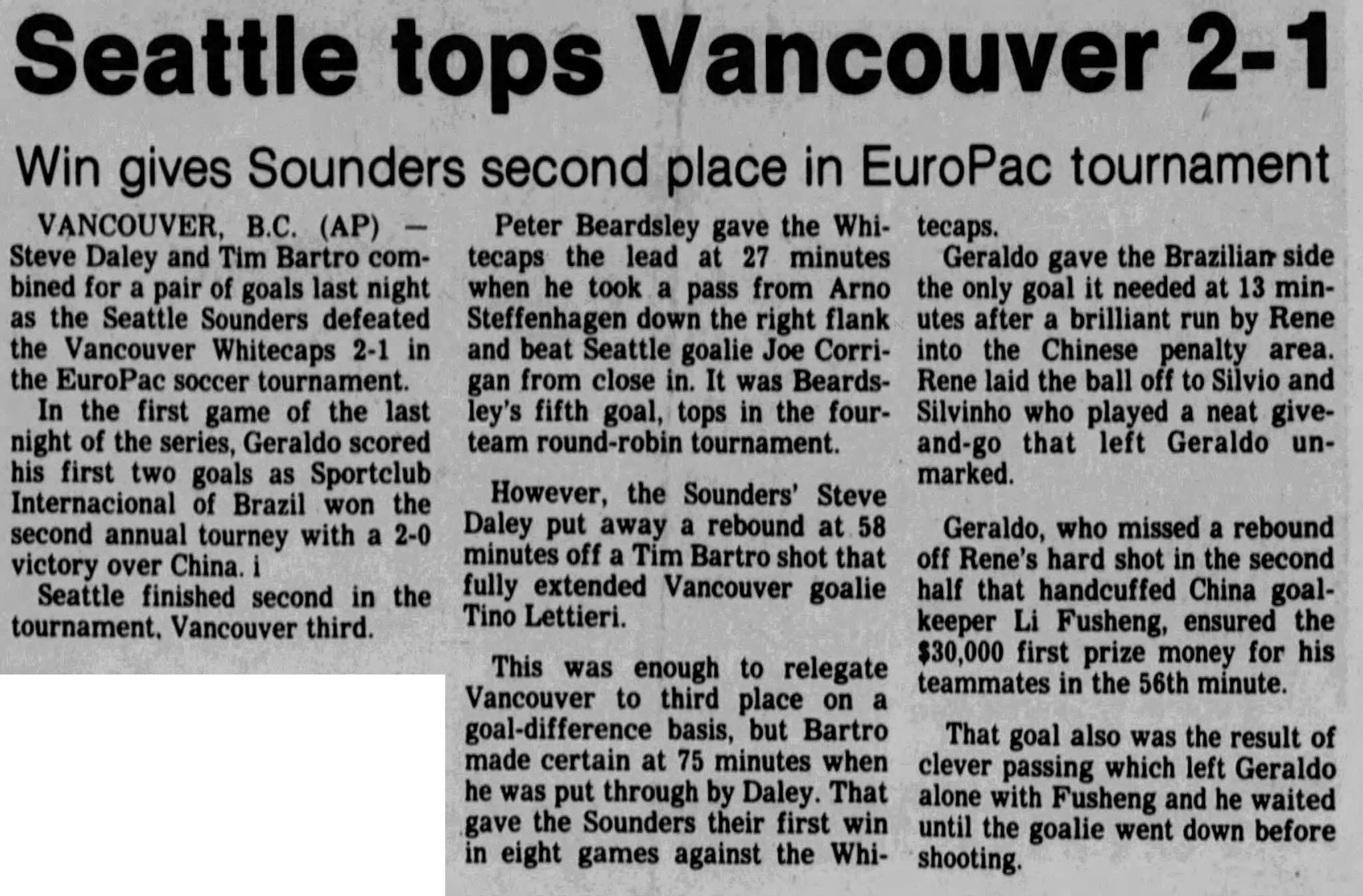 Goals: Whitecaps-Peter Beardsley   Internacional-Silvio (2), Own Goal, Rene
