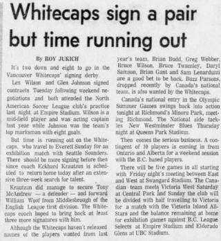Date: April 8, 1984    Whitecaps won 1-0    Attendance: 800