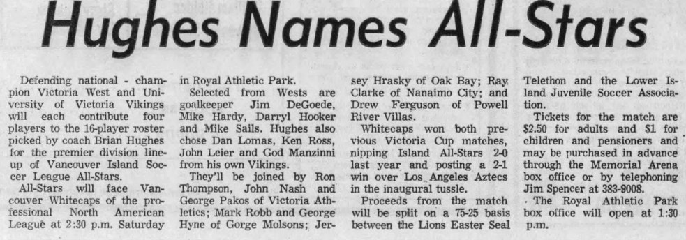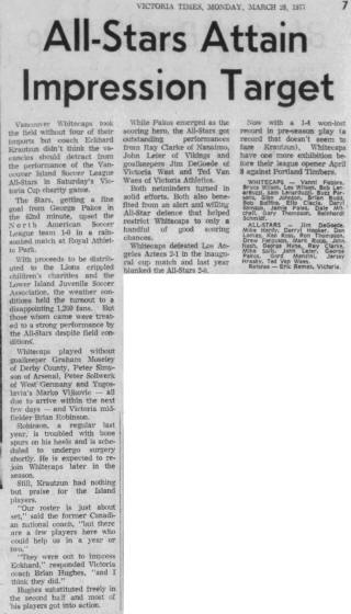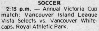 Goals: Whitecaps-Alan Taylor (2), Terry Felix (2), David Norman, Carl Valentine    Selects-Ray Clark