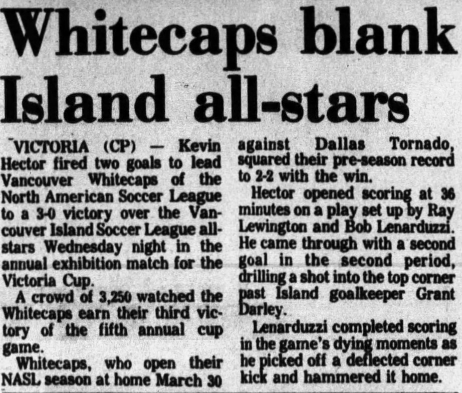 Goals: Whitecaps-Kevin Hector (2), Bob Lenarduzzi
