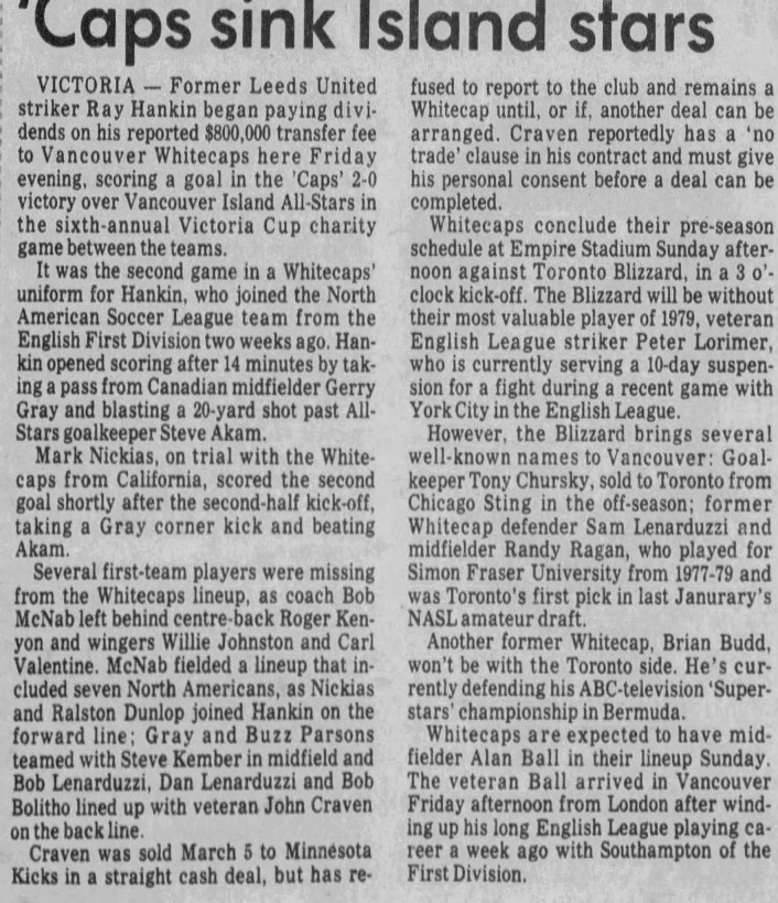 Date: March 21, 1980     Whitecaps won 2-0   Attendance: 3,000
