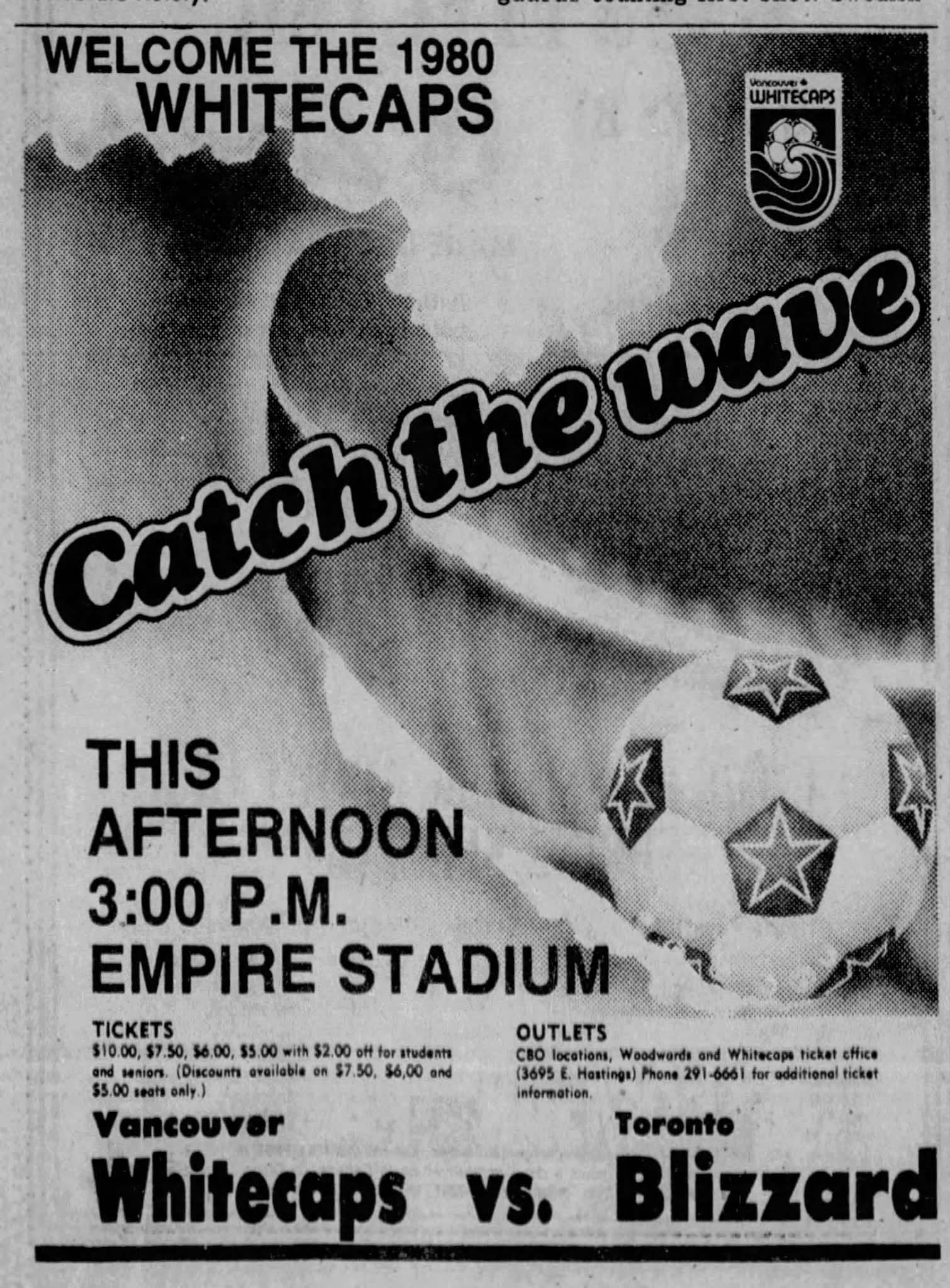 Date: March 23, 1980     Whitecaps won 2-1   Attendance: 8,554
