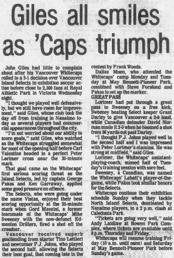 Goals: Whitecaps-Brian Budd, Neils Kristensen   Selects-