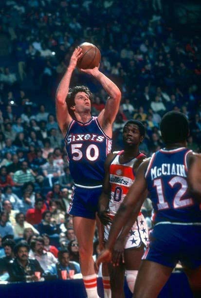 ![]() Billy Knight (25), Steve Mix (50), Caldwell Jones (11) Indiana Pacers at Philadelphia 76ers |