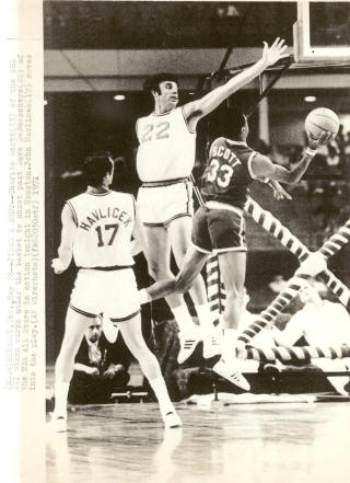 ![]() ![]() Bill Melchionni, Charlie Scott (33), Dick Grubar (13) North Carolina vs. Villanova |