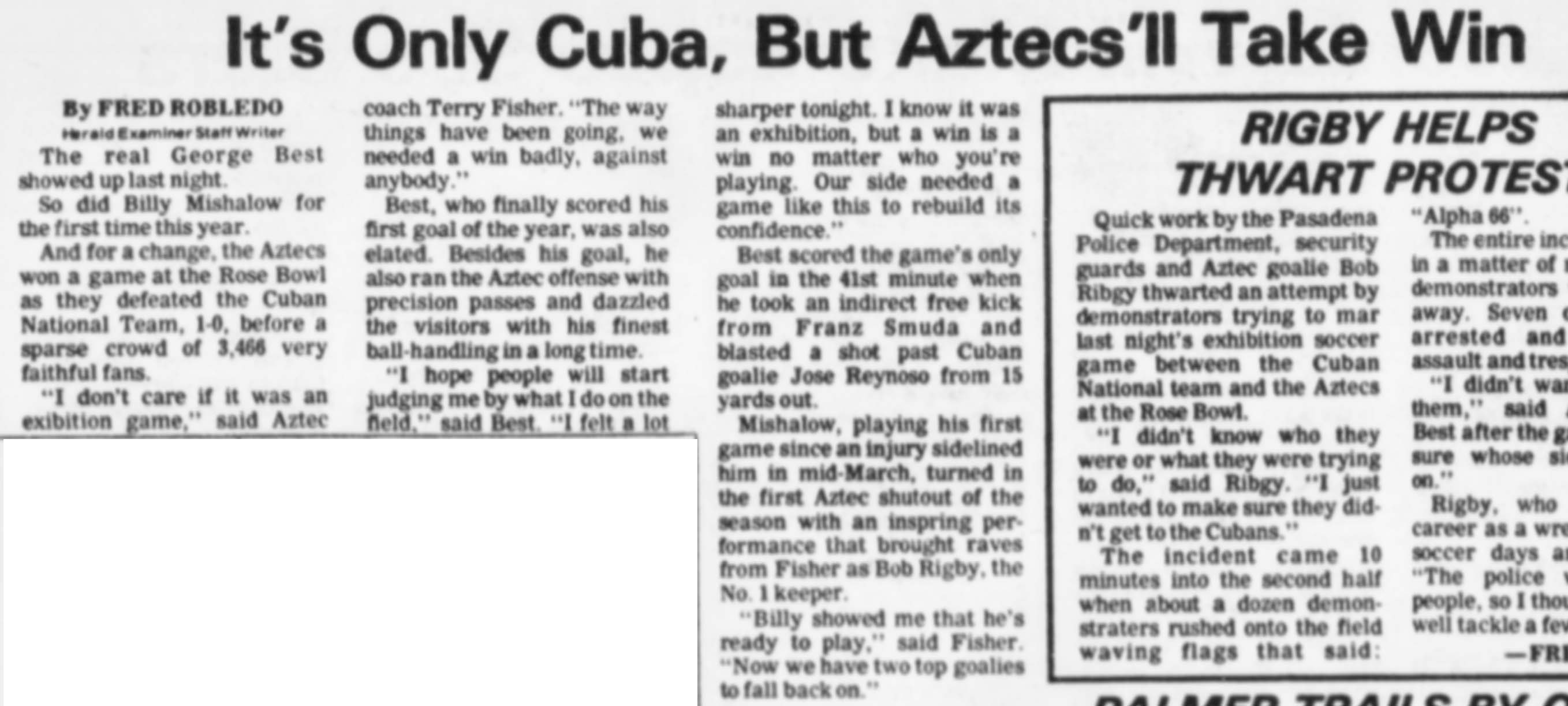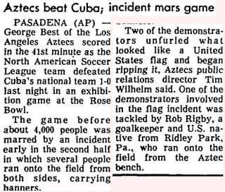 | Cuban National Team at Los Angeles Aztecs Date: May 4, 1978 Aztecs won 1-0 Attendance: 3,466 Goals: Aztecs-George Best |