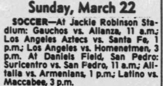 Angeles Soccer Tournament) Date: March 19, 1981 Aztecs lost 1-0 Attendance: 4,534 |