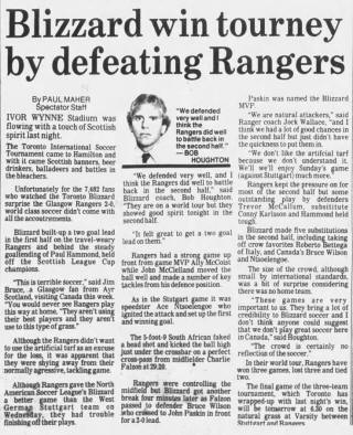 Catharines, Ontario) Date: June 10, 1981 Blizzard Won 2-0 Attendance Goals: Blizzard-Noel Newman, Gordon Sweetzer |