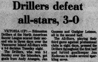| Edmonton Drillers vs. Portland Timbers Date: March 30, 1980 Drillers won 1-0 Attendance: Goals: Drillers-Dwight Lodeweges |