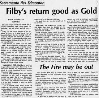 (Sacramento, CA) Date: March 19, 1980 Drillers tied 3-3 Attendance: 2,261 Goals: Drillers-Lorenz Hilkes, Dwight Lodeweges (2) Gold-Malcolm Filby (2), Anselmo Vicioso |