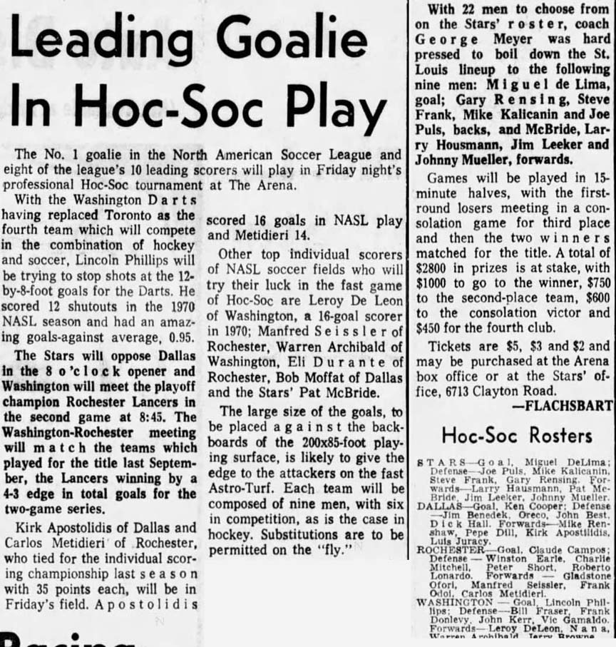Louis Stars Date: June 30, 1970 Stars won 2-1 Attendance: 5,211 |