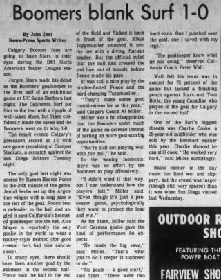 Barbara, California) Date: March 21, 1981 Boomers won 1-0 Attendance: Goals: Calgary-Ramon Hector Ponce |