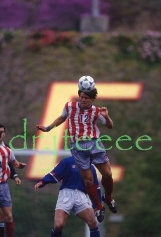 ![]() Carlos Hermosillo (27), Jeff Agoos (12) Mexico vs. USA |