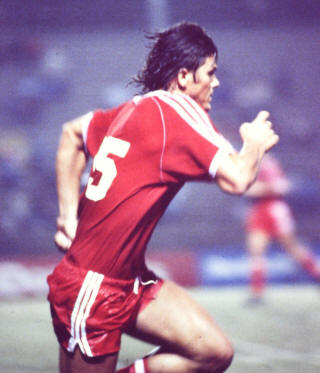 ![]() Seninho (11), Andranik Eskandarian (2), ?, Mark Liveric (14) New York Cosmos vs. Cruz Azul Los Angeles Soccer Tournament March 30, 1980 |