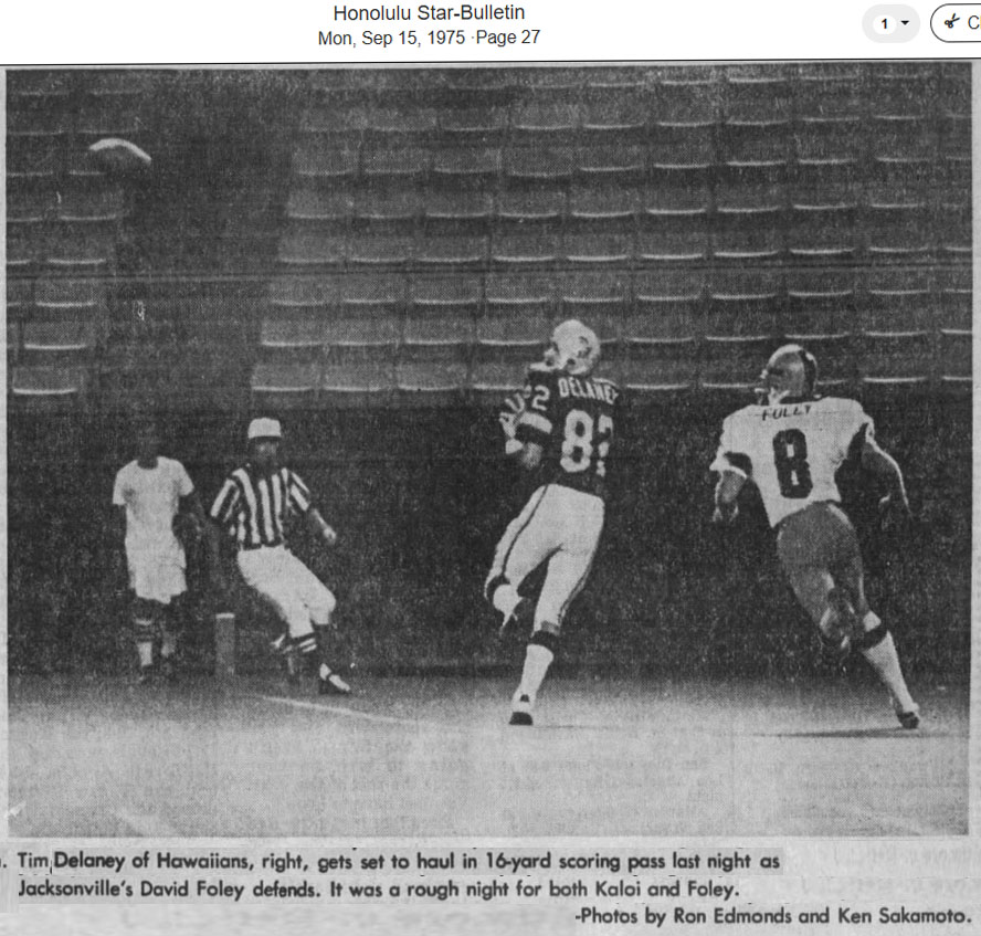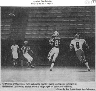 ![]() Tim Delaney (82), Dick Thornton (45) Memphis Southmen at The Hawaiians Photo by Leonard Nakahashi |