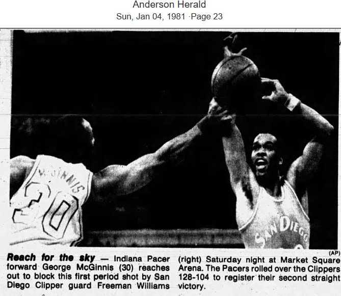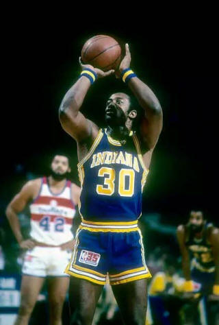 ![]() Skeeter Swift (23), George McGinnis (30) Pittsburgh Condors at Indiana Pacers Photo by Frank H. Fisse From hoopshall.com |