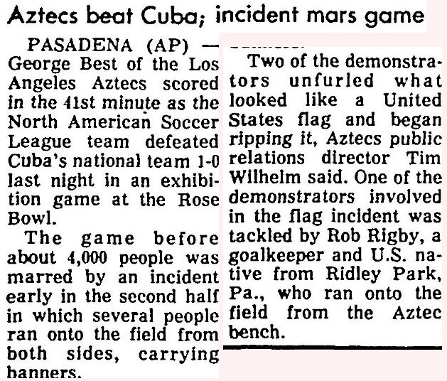 | Cuban National Team at Los Angeles Aztecs Date: May 4, 1978 Aztecs won 1-0 Attendance: 3,466 Goals: Aztecs-George Best |