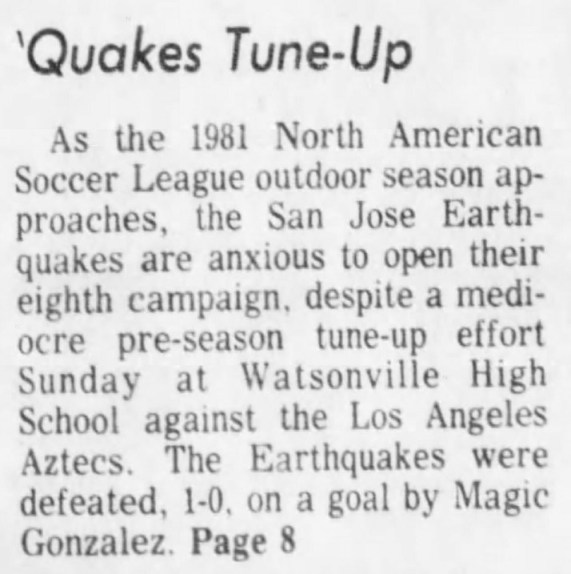 CA) Date: March 23, 1981 Aztecs won 1-0 Attendance: 1,000 Goals: Aztecs-Magic Gonzalez |