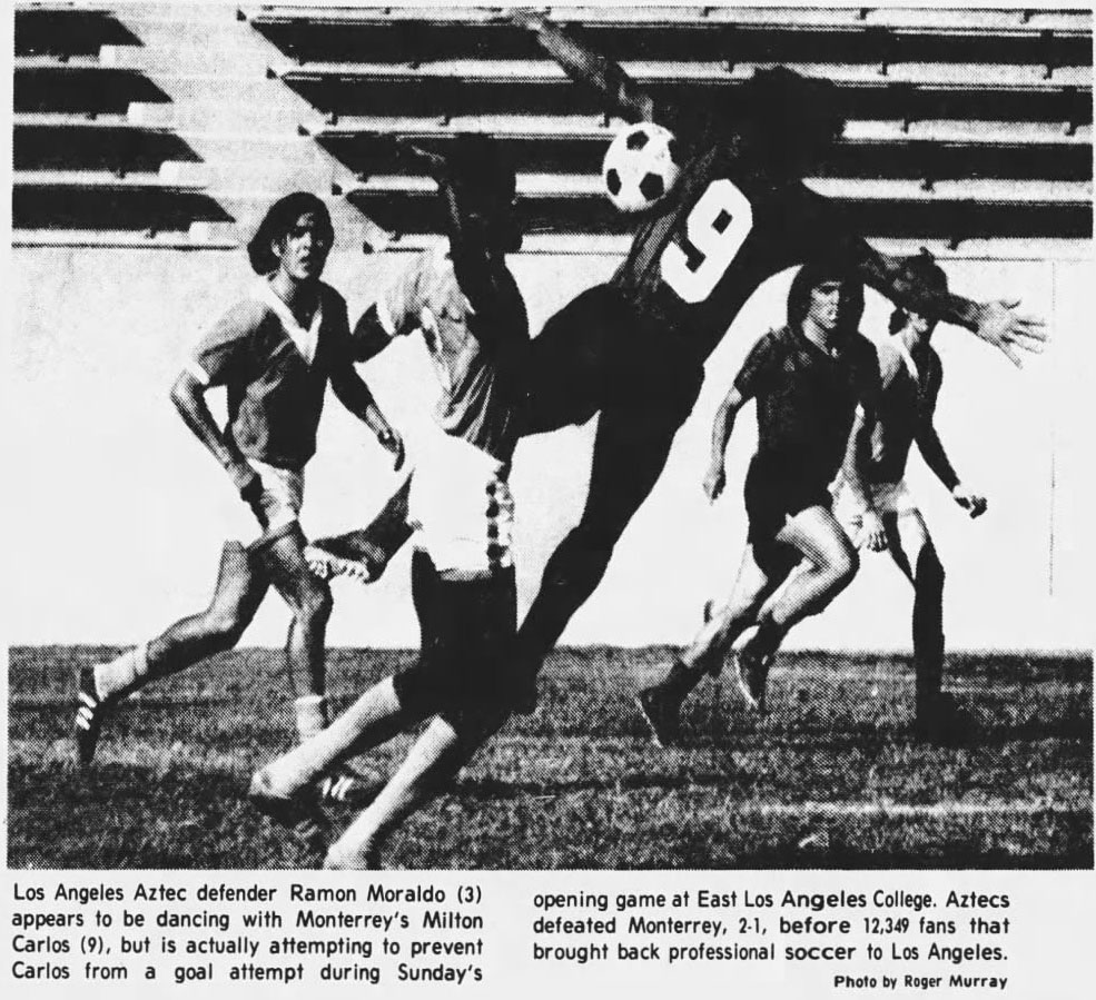 | New York Cosmos at Los Angeles Aztecs Date: April 11, 1976 Aztecs lost 1-0 Attendance: 29,232 Goals: Cosmos-Pele |