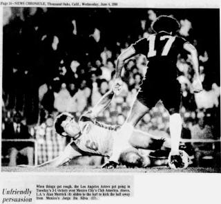 | Club America (Mexico) at Los Angeles Aztecs Date: June 3, 1980 Aztecs won 3-1 Attendance: 12,603 Goals: Aztecs-Luis Fernando (2), Club America-Jorge Da Silva |