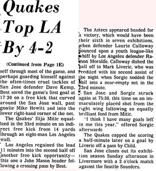 | Los Angeles Aztecs vs. San Jose Earthquakes