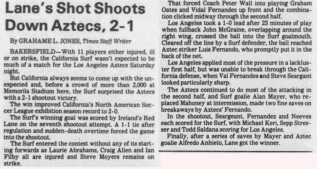 Date: March 2, 1979   Surf won 1-0    Attendance: 3,500