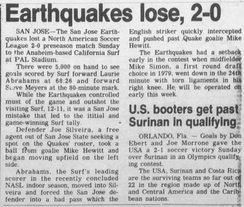 Date: March 16, 1980       Surf won 2-0    Attendance: 5,000