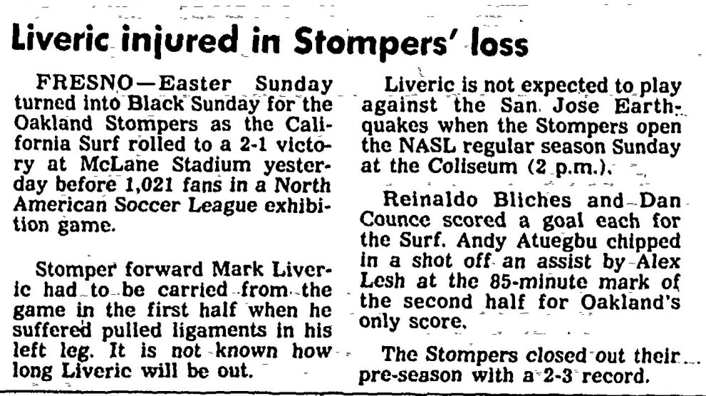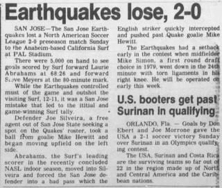 Date: March 25, 1978   Surf lost 1-0   Attendance: