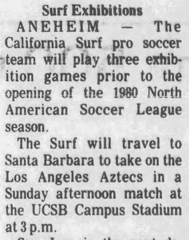 Los Angeles Aztecs vs. California Surf (Santa Barbara, California)