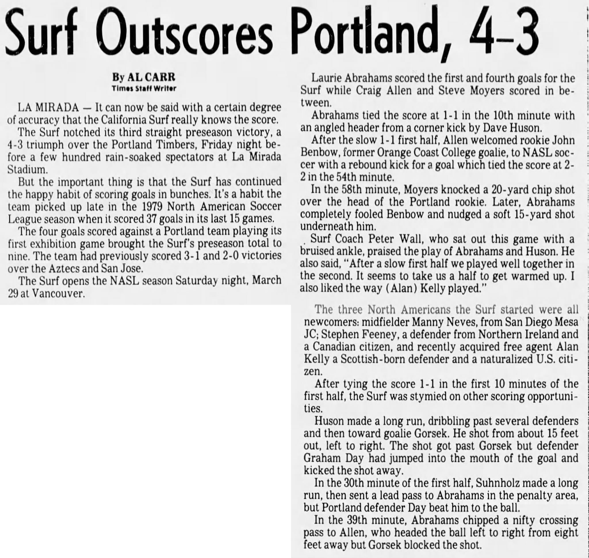 Date: March 21, 1980  Surf won Timbers lost 4-3   Attendance: