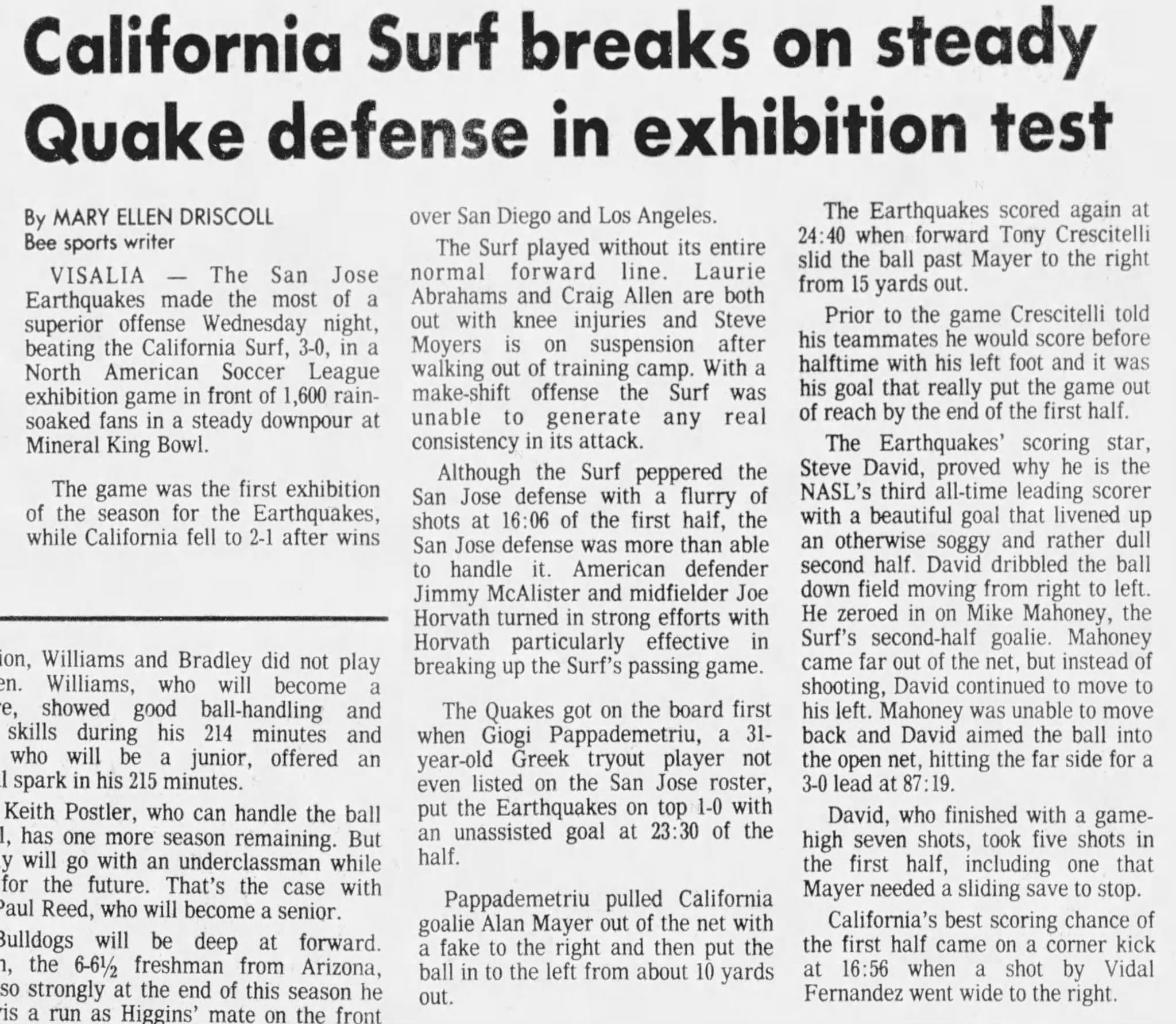 Goals: Earthquakes-George Pappademetriu, Tony Crescitelli, Steve David